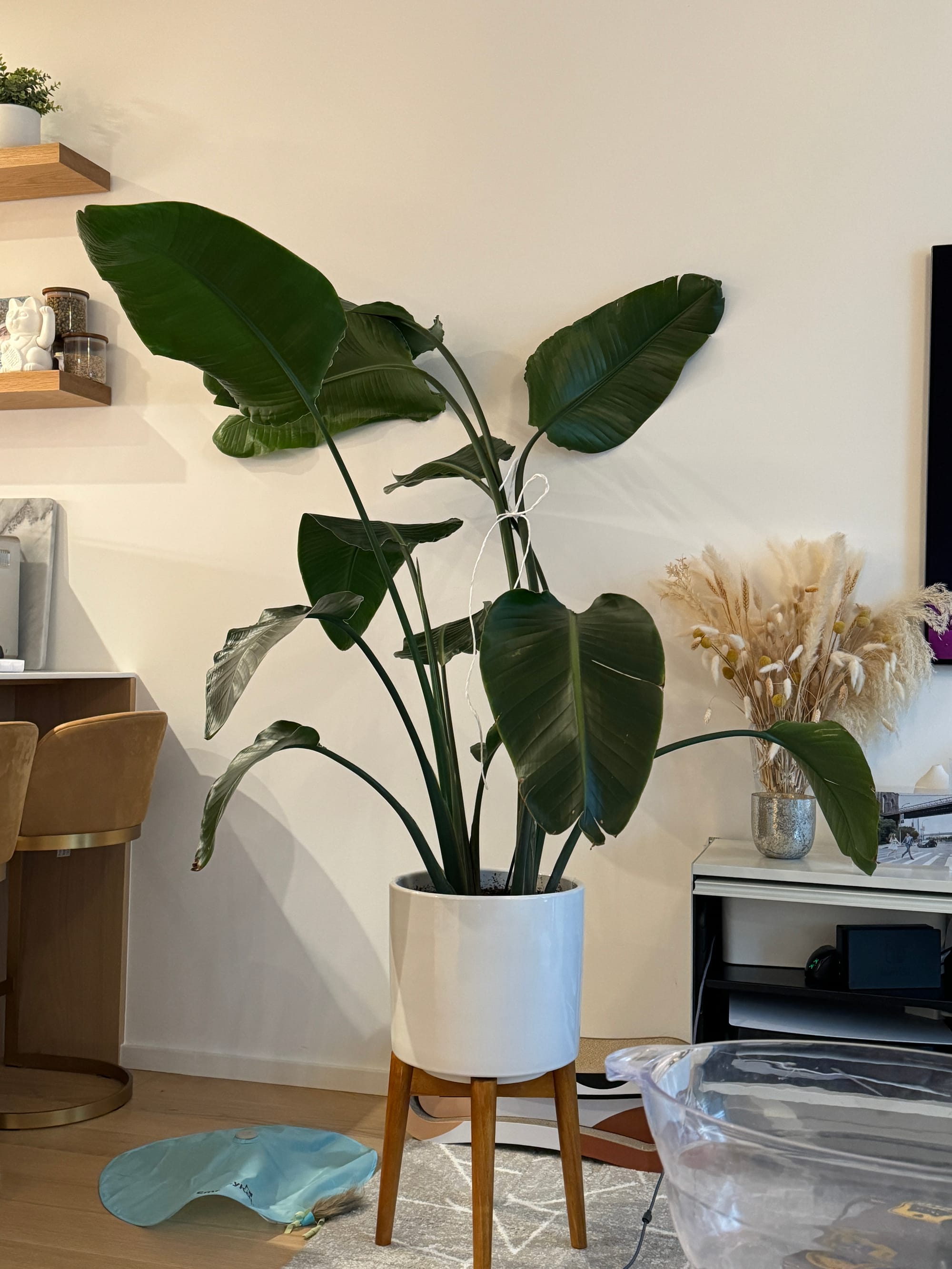 I hosted a BBQ for my previous team on my roof, where I made a bunch of kabobs, drinks, and summer salads. My neighbor didn't want their giant Bird of Paradise, so now it's mine. ☺️